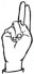 На ћирилици написано МИНА ГРУБНИЋ састоји се из 11 слова [?]. Исписано ћириличном једноручном азбуком за глувонеме: